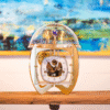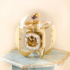 The new Tellurium IV is a real design masterpiece that combines modern and classic in a particular futuristic form. A milled rosette rondeau that shows the 12 printed zodiac signs of the month and the date gives a fascinating view into the world of astronomy. Especially distinguished is the spezial turned dial fort his particular clock with a see through on the movement, which seems to float in a glas cube. The design piece reproduces the annual orbit of the earth around the sun, with the earth rotating around its own axis once in 24 hours. The moon, in turn, revolves around the earth in 29.5 days completing a full rotation around its axis. This allows the reproduction of the different moon phases as they are visible from earth. In the course of one year, the earth passes all 12 zodiac signs, months and individual days which are indicated on the flat disc. 8-day spring wound movement with 4/4 Westminster chime on 4 polished bells. Separate second feature, 11 jewel deadbeat Swiss escapement with automatic night shut-off. The Tellurium has reproductions of the sun, earth and moon, incorporating the day/month indicator.